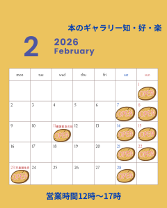 2026年3月2日 / 最終更新日時 : 2026年3月2日 admin 「本と花」本のギャラリー知・好・楽 3月の営業カレンダーです。 3月の営業カレンダーです。8日日曜日は、お休みします。 週末、祝日の12時~17時営業しています。ご予約いただければ、閉店時間を延長も可能です。 どうぞ、よろしくお願いします。 \ 最新情報をチェック / FacebookXBlueskyHatenaCopy コメントを残す コメントをキャンセルメールアドレスが公開されることはありません。 ※ が付いている欄は必須項目ですコメント ※ 名前 ※ メール ※ サイト 次回のコメントで使用するためブラウザーに自分の名前、メールアドレス、サイトを保存する。 Δ